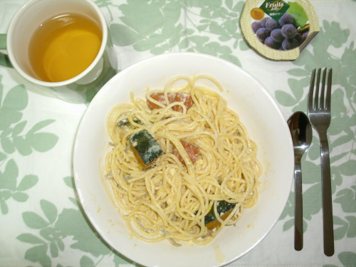 南瓜の煮つけにしようと思ったのですが、思ったより少し多かったので予定を変更して今日はパスタ。明日の朝晩用に残りの南瓜を今まさに煮付けてます(笑) 南瓜、生鮮コンビニの100円カットものだったのに、予想以上にホクホクでした。100円ローソン侮れねぇ…。否、此れからもお世話になります(笑)