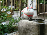 いやもう、鹿威しのとこの此の猫の像が可愛い。別に「ただいま猫」というらしい頭を撫でる像もあります(撫でてきました) 写真撮ったけど、ボケてたので…。あと、紫陽花も綺麗でした(完全に個人的趣味)
