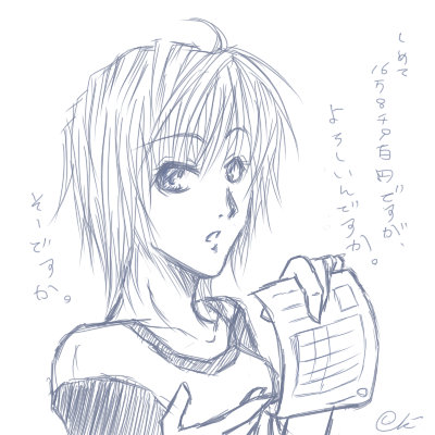 キャラマっぽいことがしたい。自分創作屋だなって思えることがしたい…。絵は描いてますけど、こう、もっとオープンな活動がしたいですね。思うようにネット出来なかった頃はもっとやりたいことが一杯あったはずなのに、いざ好きになると何やっていいかまったく判らなくなってしまうのだから悲しいなぁ。